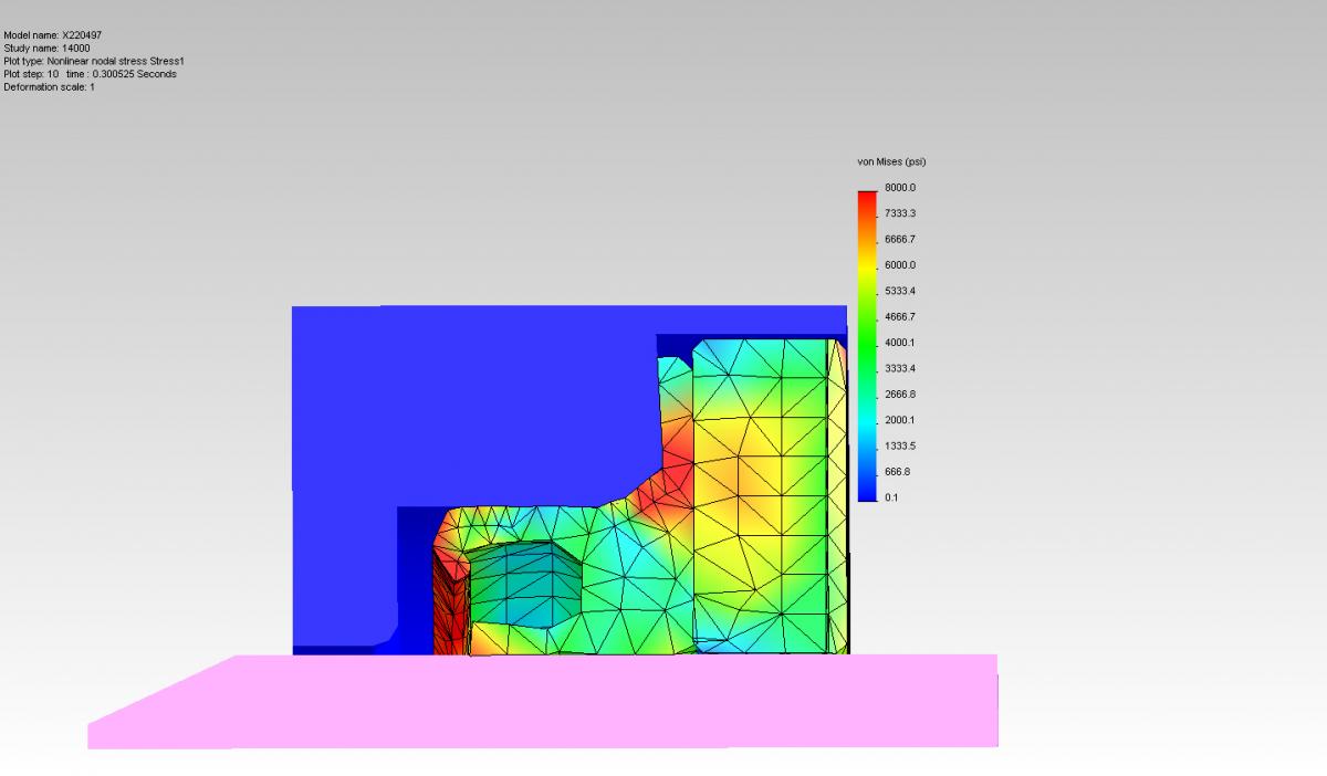 Pressure created in the forward stroke, or by the seal and its energizer, can cause sealing contact stress to the plunger surface. Extreme effects occur in the forward stroke under ultra-high pressure, and in that moment the sealing contact stress is so great that seal material shear stress is overtaken, causing wear or shedding.