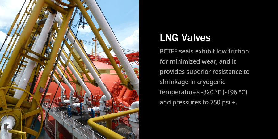 This selection of high-performance sealing materials consists of fluoropolymers (FP), fluorinated ethylene propylene (FEP), polyimide (PI), and polychlorotrifluoroethylene (PCTFE). Each material has unique properties that can be applied to address friction, temperature, pressure, and media challenges in sealing applications. PCTFE, for example, has excellent resistance to shrinkage and deformation at very low temperatures, making it extremely effective in cryogenic environments.